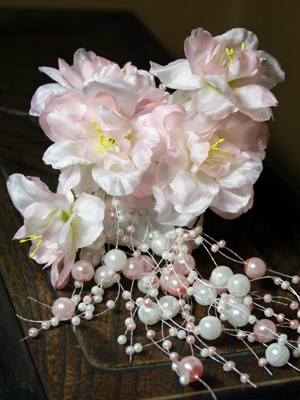 花椿というお店で2800円(送料別)でした。これはUピン4本(桜2本、パール2本)で構成されているので、ばらして好きに使えるのがミソです。写真と実物の色の差もなく、本当によいお買い物をしたなぁというのが素直な感想。母が買った髪飾りは、髪飾り単体ならお洒落でいいのかもしれませんが、「これ絶対私の袴に似合わんだろう!!」という感じだったので、先ほど電話して妹の時に使ってくれるようお願いしました。単体で物を見るセンスはいいくせに、組み合わせのセンスがないのがmy母です。なんかもう致命的としかいえない気が…(・ω・`)
